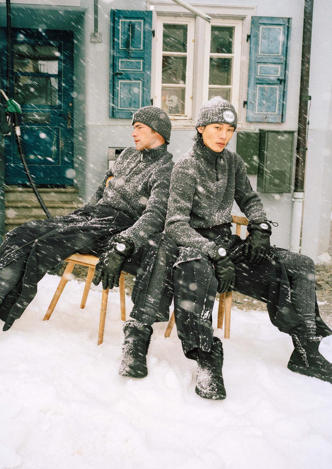 إطلالتان من مجموعة Giorgio Armani Neve من Giorgio Armani تكشف كلّ واحدة منهما عن سترة وسروال عصريّين مشغولين بحرفيّة عالية وبموادّ مميّزة لمقاومة البرد، ومنسقين مع قبّعتين صوفيّتين وقفّازات أنيقة. المصدر: Lukas Wassmann