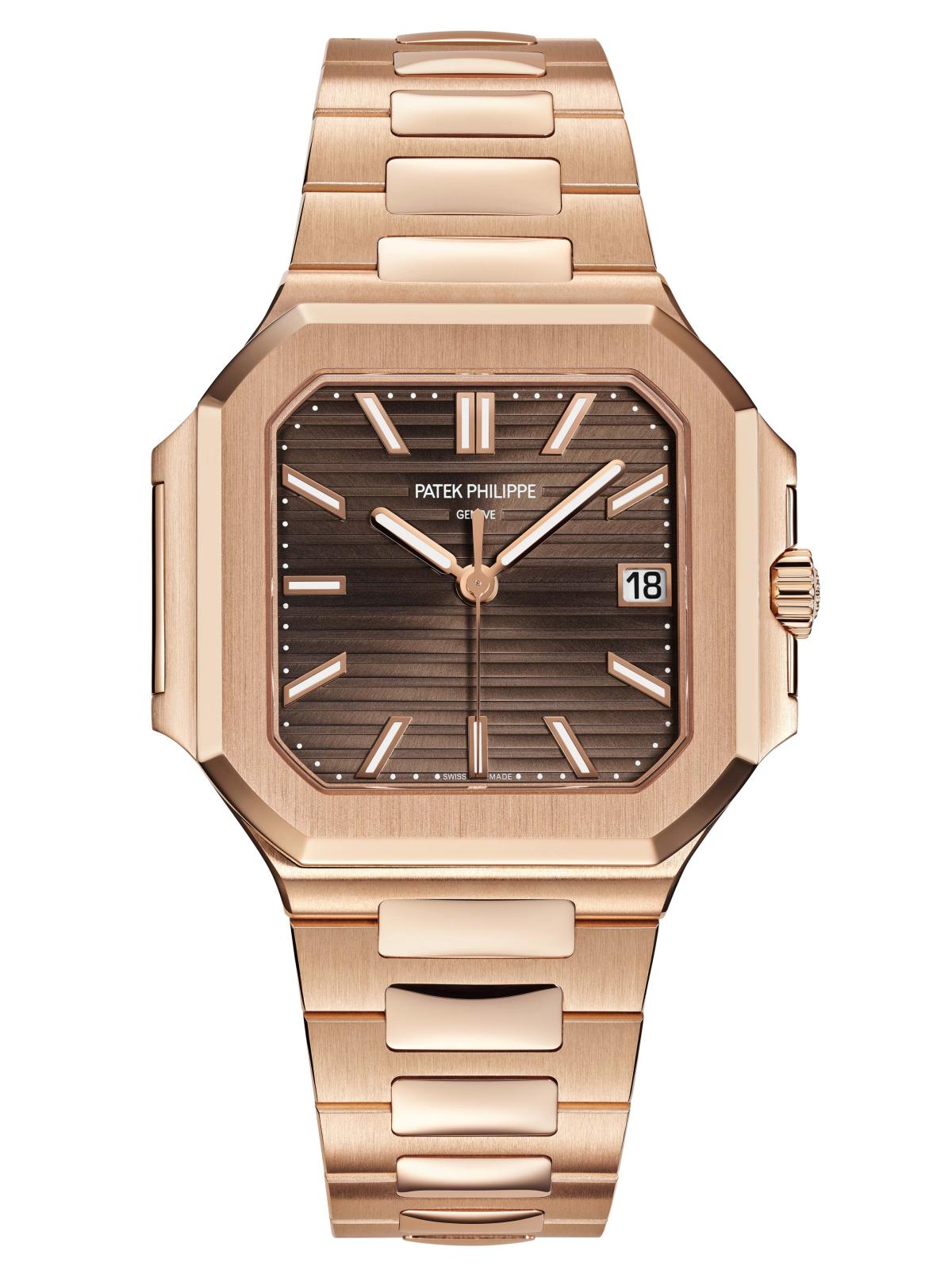 يتماهى الإصدار الجديد 7128/1R-001 من مجموعة ساعات Cubitus، الذي أطلقته Patek Philippe، مع الرحلات على القمم والمرتفعات، حيث يلتقي جمال الطبيعة الباردة مع الروعة الحرفية السويسرية. لقد صاغت العلامة، عبر تفاصيل هذه النسخة، أسلوب الأناقة غير الرسمية، فهي ساعة متوسطة الحجم مصنوعة بعلبة من الذهب الوردي بقطر 40 مم، ومصممة لتناسب المعاصم كافة ولتضيء ببريقها، كما تلمع قمم الجبال تحت شمس المغيب. وبروح استثنائية، تفاعل هذا الدمج الفني الراقي مع مينائها الجريء المعزز دفئًا بلونه البني الأنيق وبنمطه المنقوش بلمسات أفقية مشعة. وتوازيًا مع هذه المعالم من الفخامة والحيوية، خفق قلب هذه الساعة بعيار 26-330 S C الذاتي التعبئة، الذي أضيف إليه دوار مركزي منفذ بالذهب عيار 21 قيراطًا ,يحمل النمط المنقوش أفقيًا نفسه الذي يلامس ميناءها.