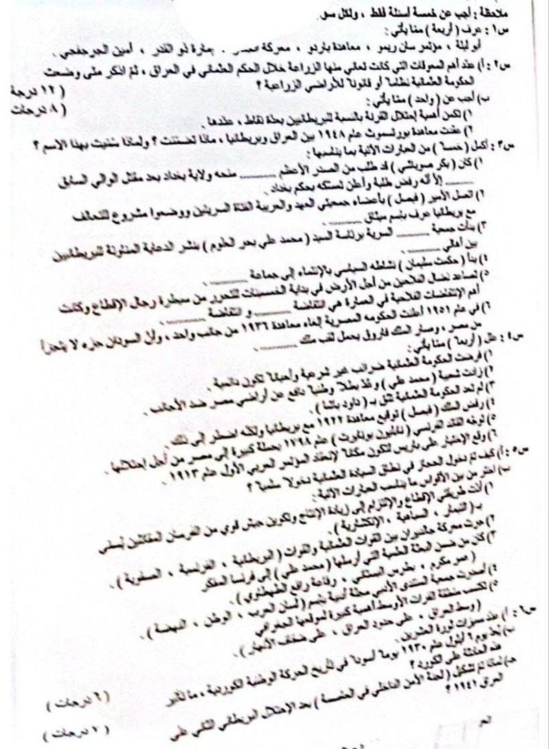 ​الأسئلة التمهيدية (الخارجية) - مادة التأريخ - للصف السادس الأدبي - تمهيدي 2026