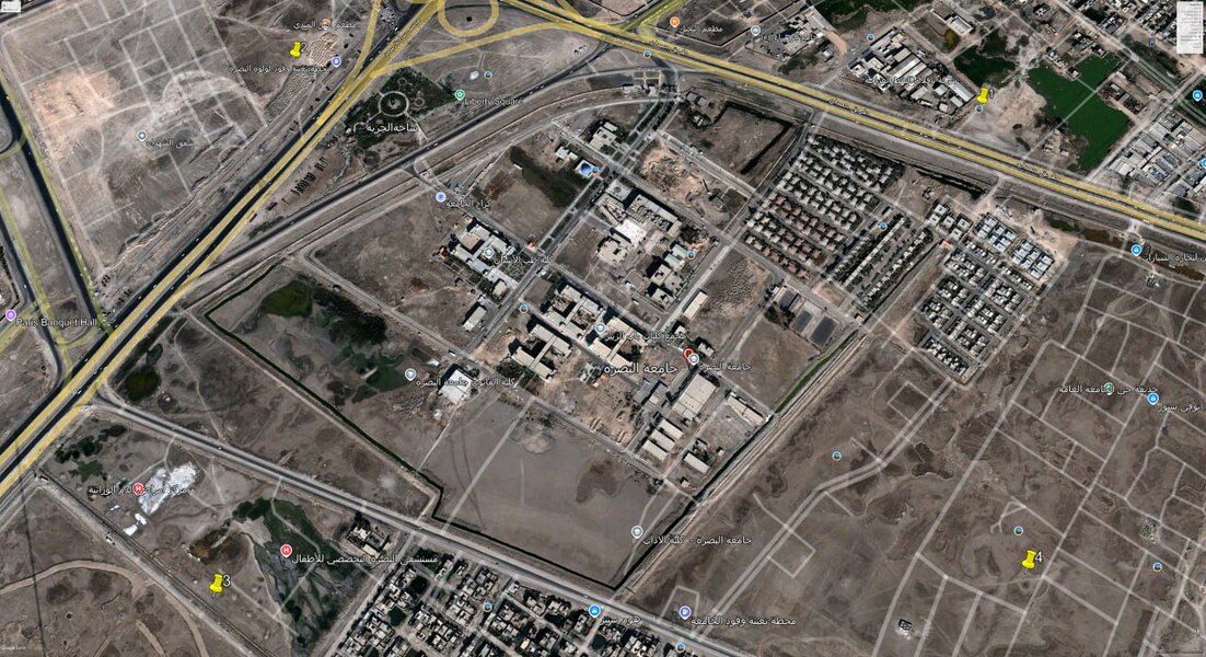 التطور العمراني لجامعة البصرة مجمع كليات باب الزبير من الفترة 2002 الى 2025