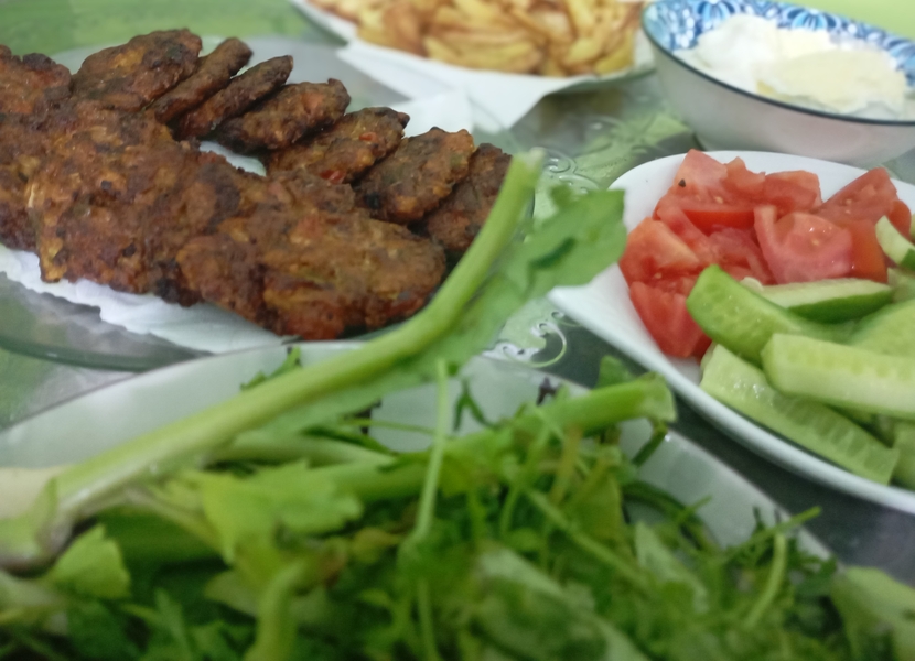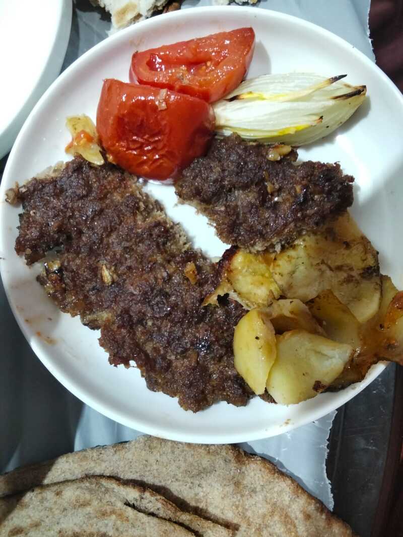 أما فطور اليوم تجربة جديدة عليه وهو كباب شوي بالفرن (نص كيلو لحم مفروم مع حبة بصل مبروشة وملعقة ملح) وكطبقة عازلة قطعت بطاطا دوائر وفرشت عليها عجينه الكباب و للفرن اول ربع ساعةفي أسفل الفرن ثم للتحميص الوجه اخر خمس دقائق ... والف عافية