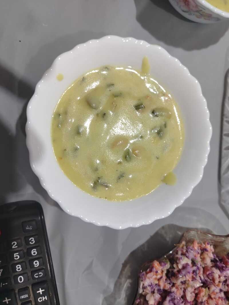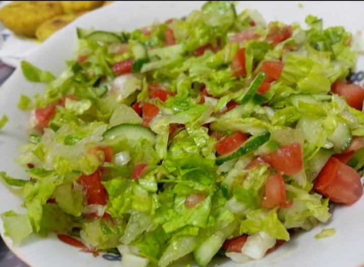 سلطات و كباب طاوة مع شوربة الفطر بطحين التمن وكانت لذيذة جدا..من صنع اديه