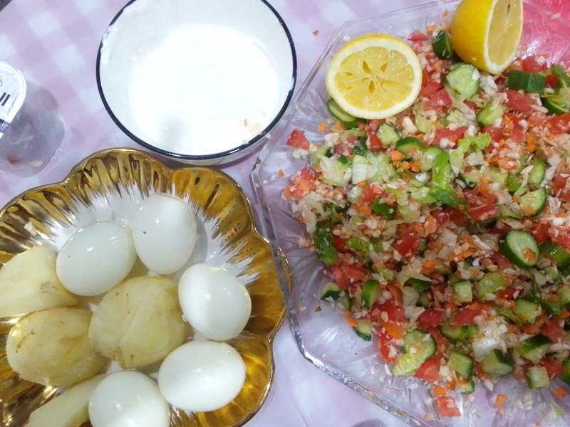كان فطور خفيف سلطات وبيض وبطاطا سلق
