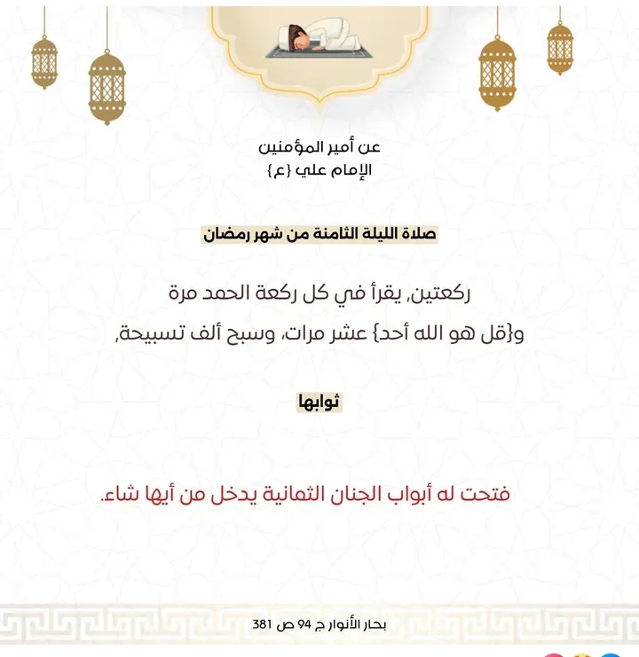 أعمال الليلة الثامنة من شهر رمضان