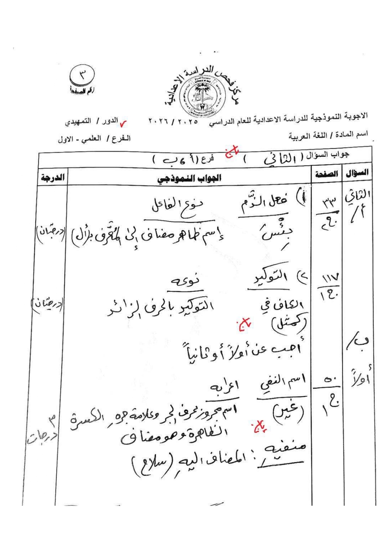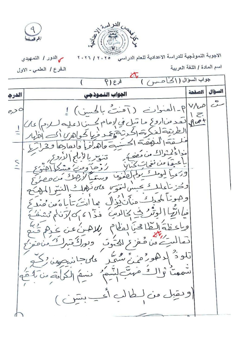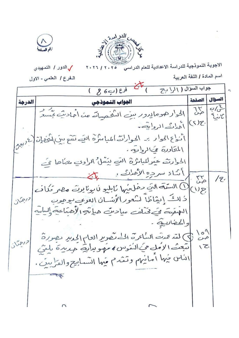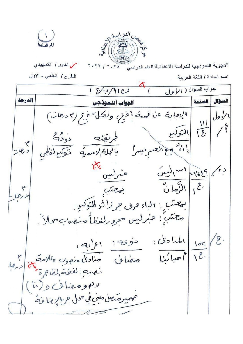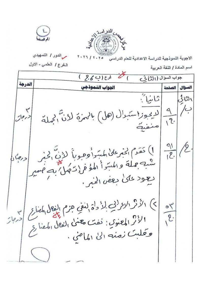 الأجوبة النموذجية لمادة اللغة العربية