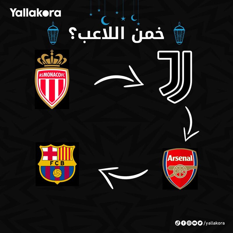 خمن اللاعب بدون الاستعانة بوسائل مساعدة موناكو الفرنسي يوفنتوس الإيطالي آرسنال الإنجليزي برشلونة الإسباني
