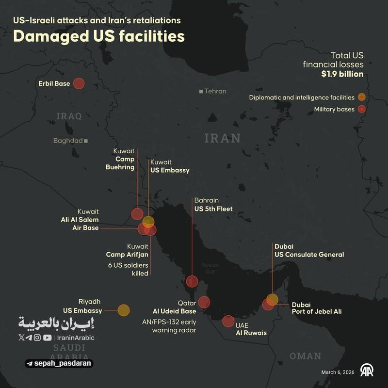 الولايات المتحدة خسرت حوالي 2 مليار دولار من المعدات العسكرية خلال الأيام الأربعة الأولى من هجماتها على إيران.