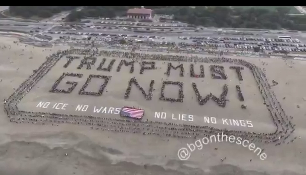 حشد من المتظاهرين في امريكا ولاية سان فرانسيسكو: يجب أن يرحل ترامب فورًا. لا للحرب، لا للأكاذيب، لا للملك.