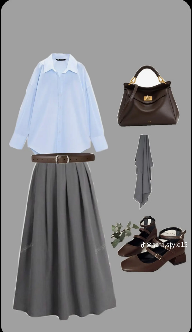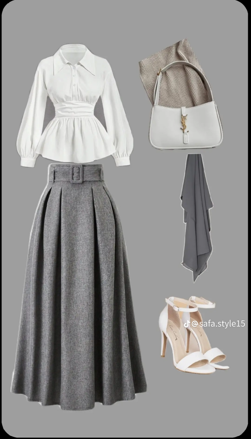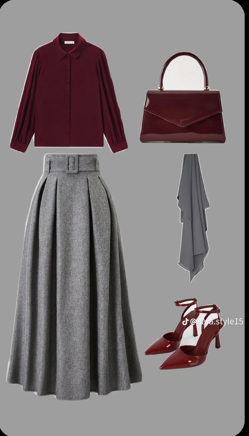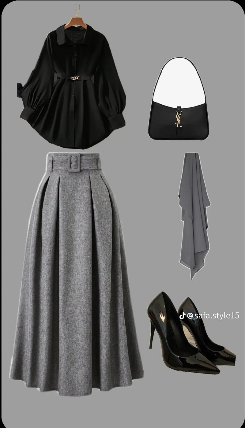 تنسيقات تنورة رصاصي تنسيق طقم كامل مع تنورة رصاصي بألوان مختلفة