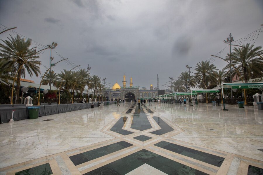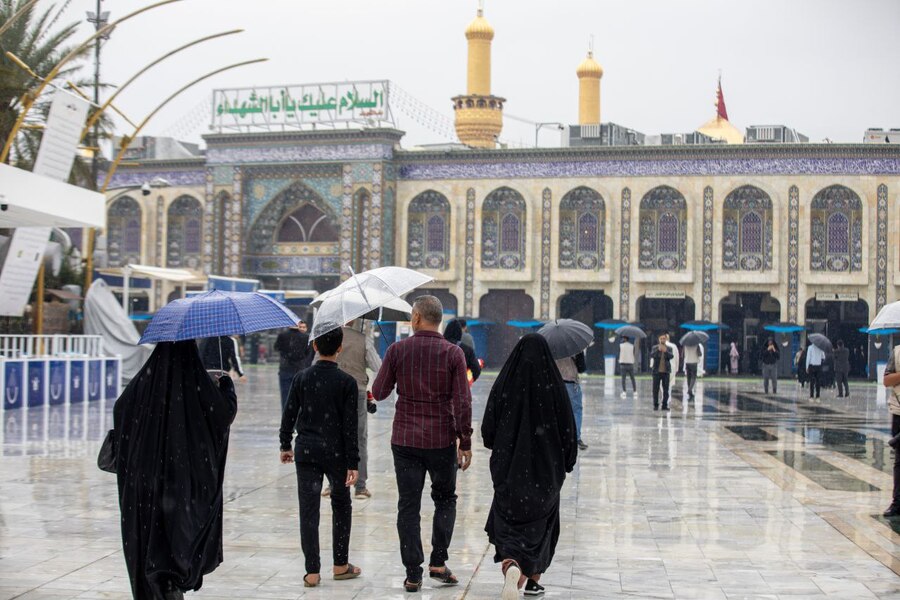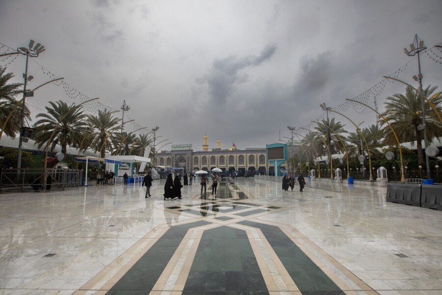 الآن في كربلاء… السماء تُمطر رحمةً وما بين الحرمين يتوهّج إيماناً