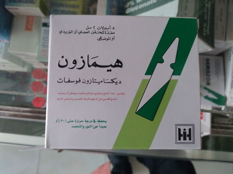 يتركب هيمازون من ديكساميتازون على شكل أمبول و مضغوطات و يستخدم في الاضطرابات الالتهابية و الأرجية ،تشخيص داء كوشينغ و فرط التنسج الكظري الخلقي و تدبير التهاب القولون التقرحي و داء كراون ، تدبير فرط الضغط داخل القحف ، تفاعلات فرط الحساسية الحادة كالصدمة التأقية و الوذمة الوعائية في القسم العلوي من السبيل التنفسي ، التهاب الكبد المناعي الذاتي ، التهاب المفاصل الروماتويدي ، الساركوئيد ، الوذمة الوعائية المترافقة مع الخباثة و علاج مساعد في التهاب السحايا الجرثومي .