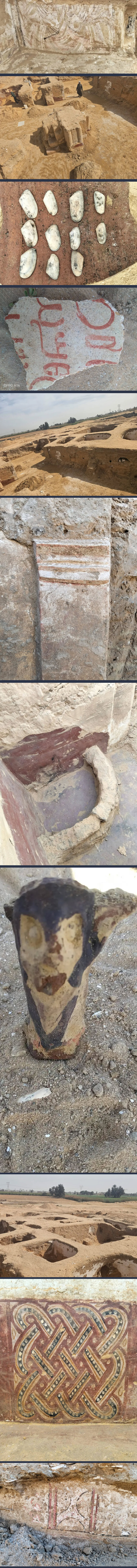 كما تم الكشف عن جدارية تصوّر غزالتين تحيط بهما زخارف نباتية، يتوسطهما شكل دائري مزدوج يحتوي على زخرفة نباتية داخلية، في نموذج فني يعكس ثراء التعبير الرمزي في الفن القبطي المبكر.