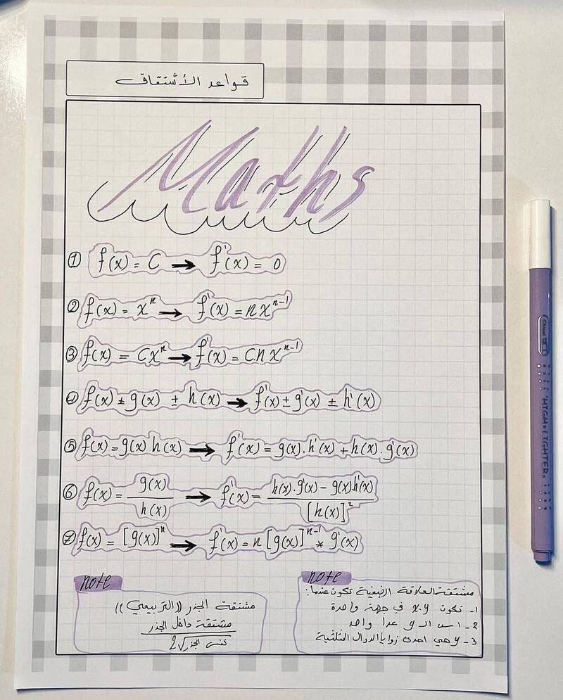 جميع قوانين التفاضل الرياضيات الفصل الثالث للصف السادس العلمي