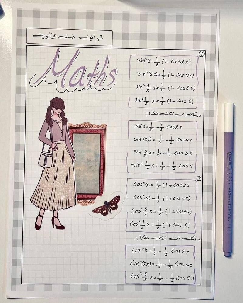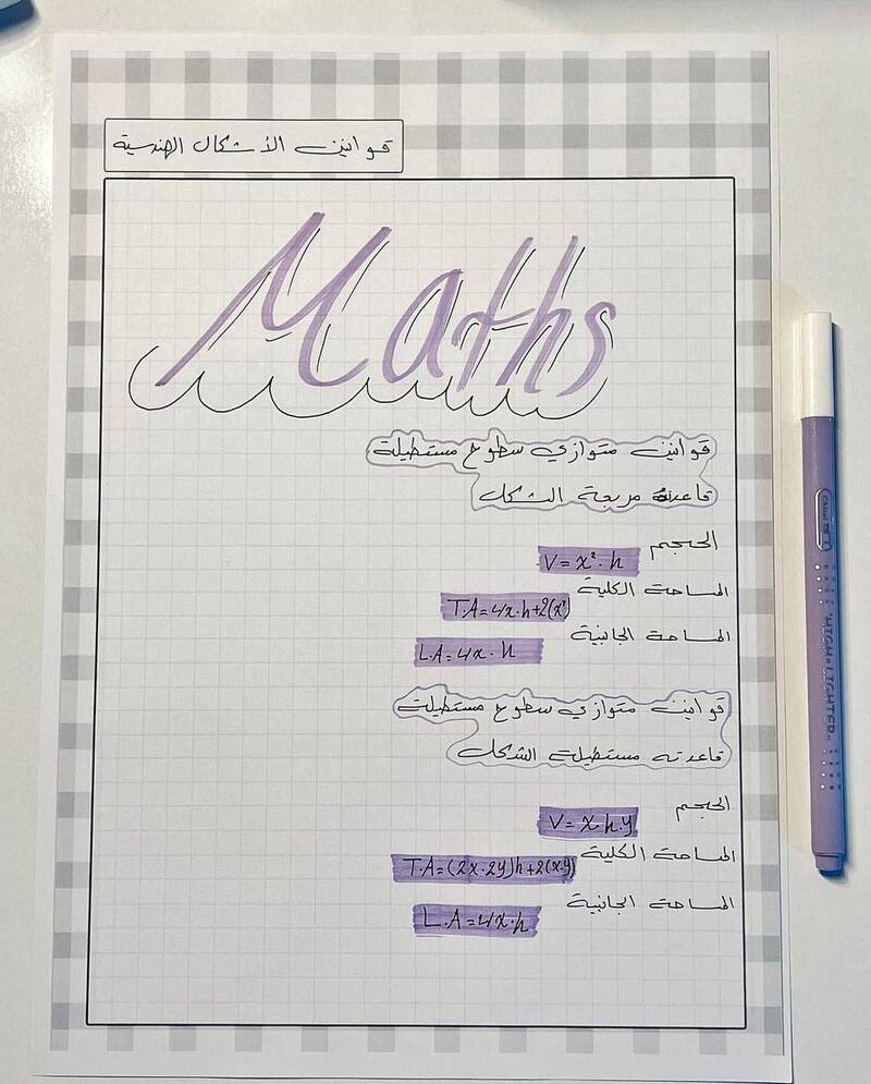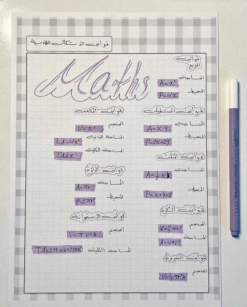 قوانين الرياضيات الفصل الثالث