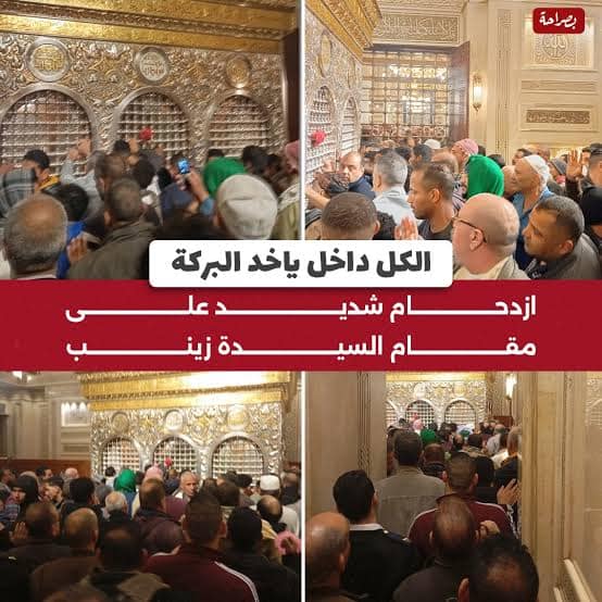 كما شهد مسجد السيدة زينب اكتظاظا غير مسبوق واختلط الدعاء بتذكر ما تعرضت له حفيدة رسول الله من سبي واهانة وتعذ يب منذ خلقوا والى يوم الدين