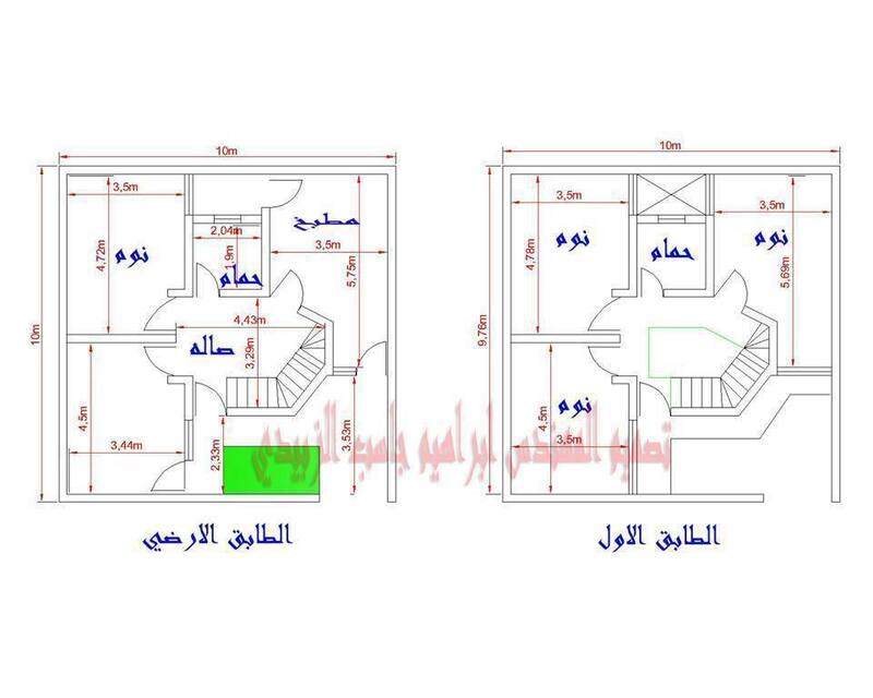 خارطة منزل مربعة 10*10 لطابقين