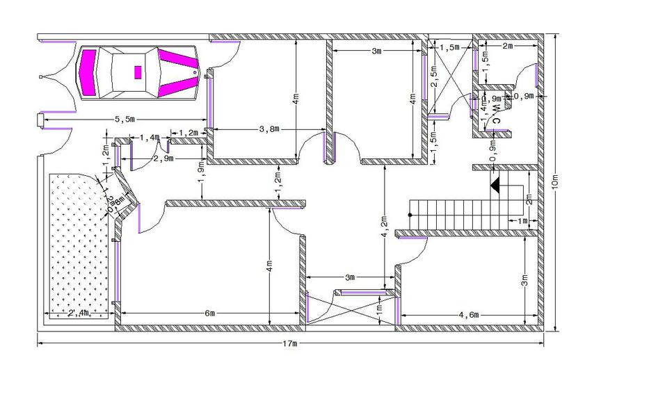 خارطة منزل أبعاد 10*17 متر