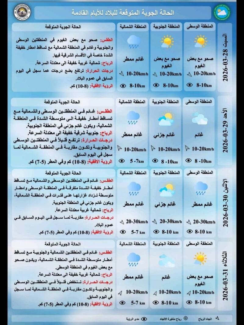 العراق على موعد مع أمطار متفاوتة الشدة وأجواء غائمة تمتد حتى نهاية آذار