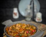 ثم نذوب ملعقة نشا بنصف كأس ماء ونضيفها ع الخضار ونتركها ع النار لمده 10 دقائق وبالاخير نضيف صوص الباربكيو يعطيها نكهة لذيذة