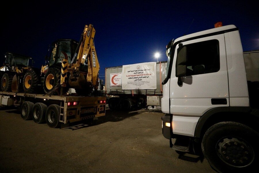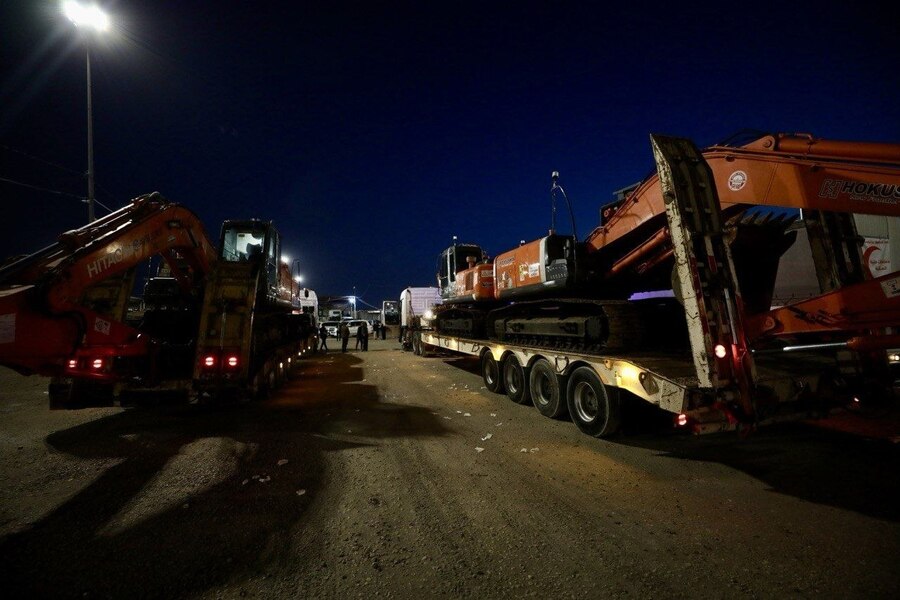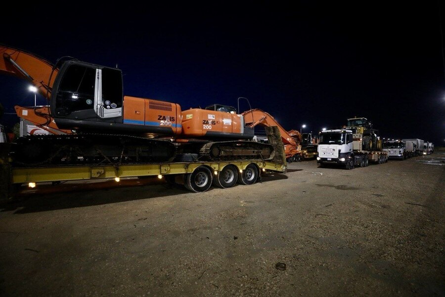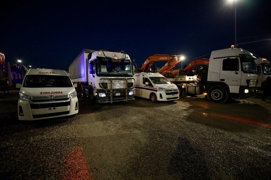 • الدعم الطبي العاجل: برزت شاحنات ضخمة تحمل شعار الهلال الأحمر مكتوباً عليها بوضوح (مساعدات طبية إنسانية - Humanitarian Medical Aids) لتوفير الرعاية الصحية للمنكوبين.