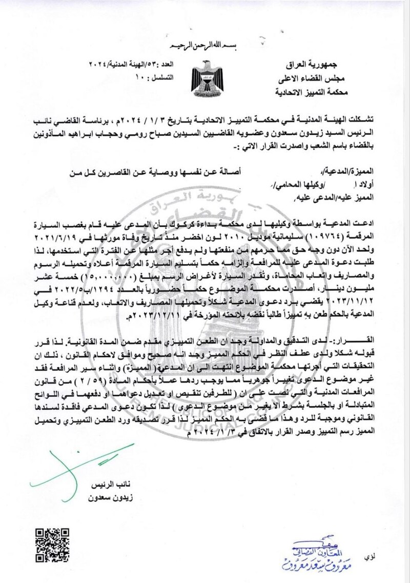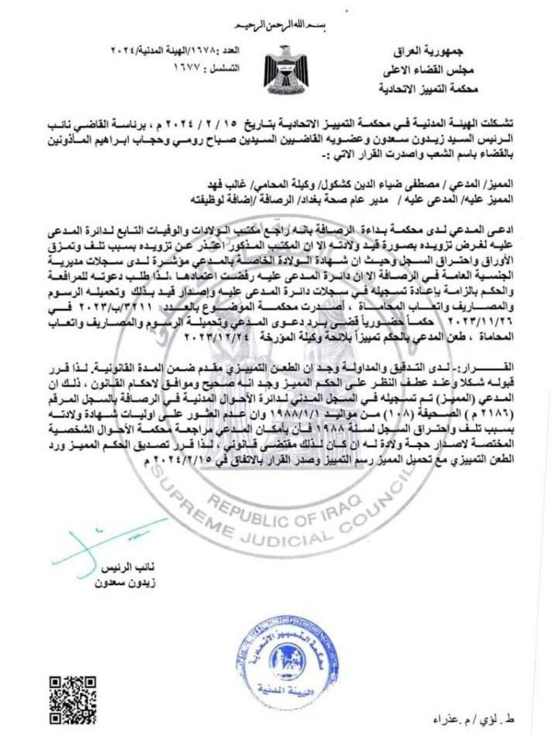 قرار تمييزي | ٢٠٢٤|ضياع او تلف شهادة الولادة.