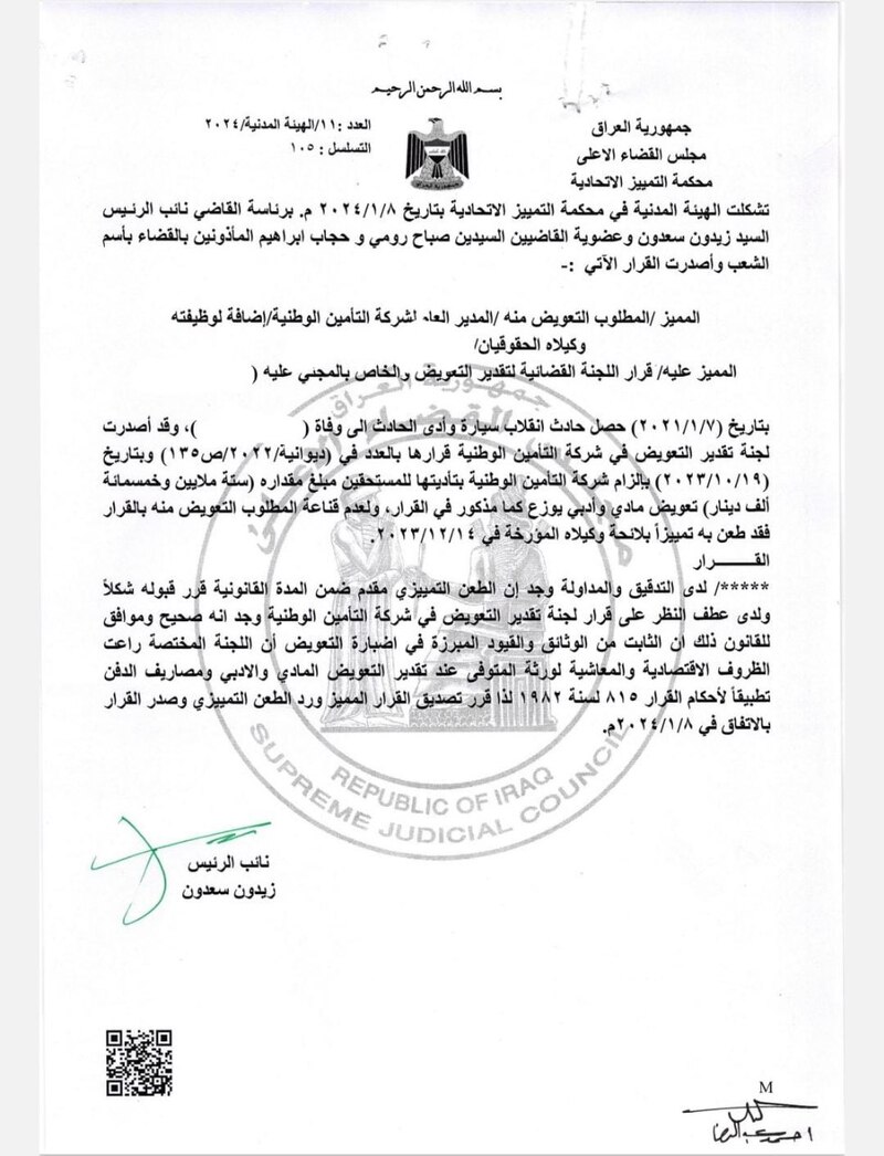 قرار تمييزي | ٢٠٢٤| تعويض من شركة التأمين الوطنية.