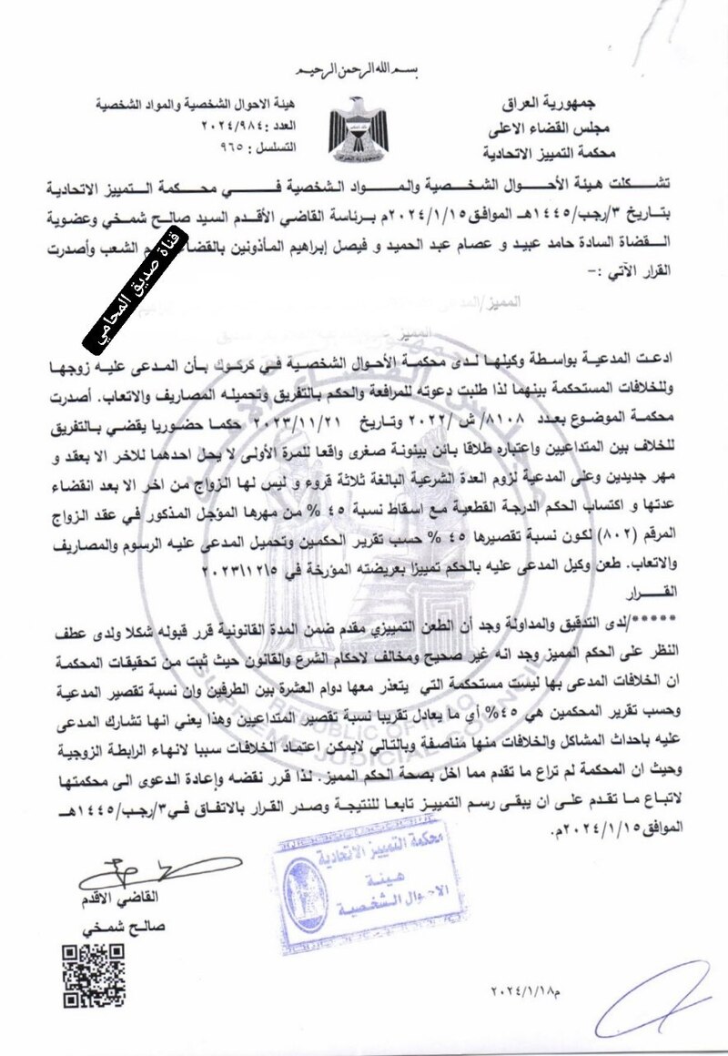قرار تمييزي | ٢٠٢٤| تفريق للضرر.