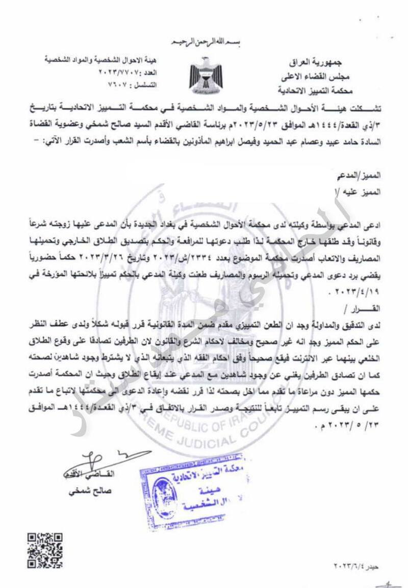 قرار تمييزي | ٢٠٢٣ | طلاق خلعي عبر الإنترنت.