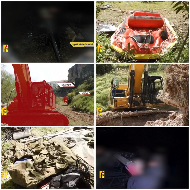 - نشر حزب الله توثيقًا للجرافات والمعدات المستخدمة لنقل القوات ووسائل أخرى تُركت في الأراضي اللبنانية.