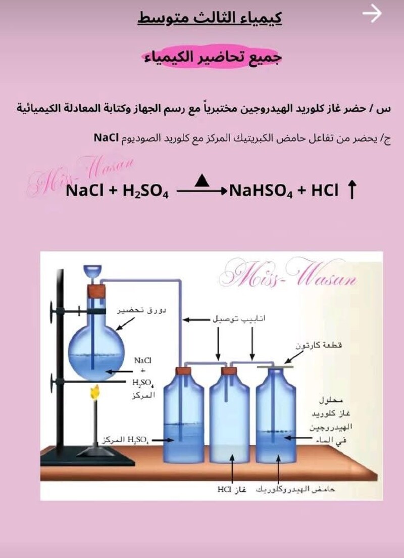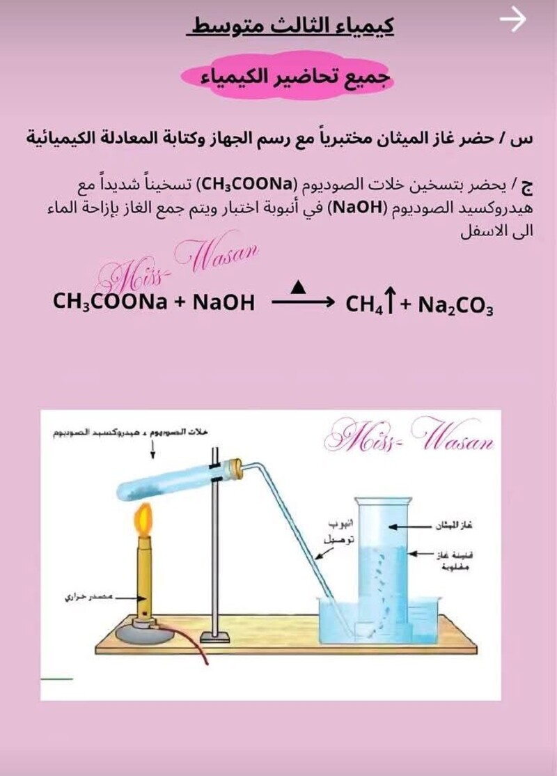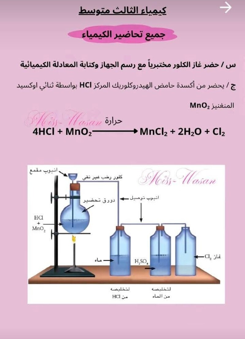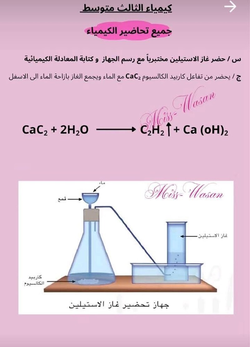 جميع التحضيرات التي تخص مادة الكيمياء الثالث متوسط