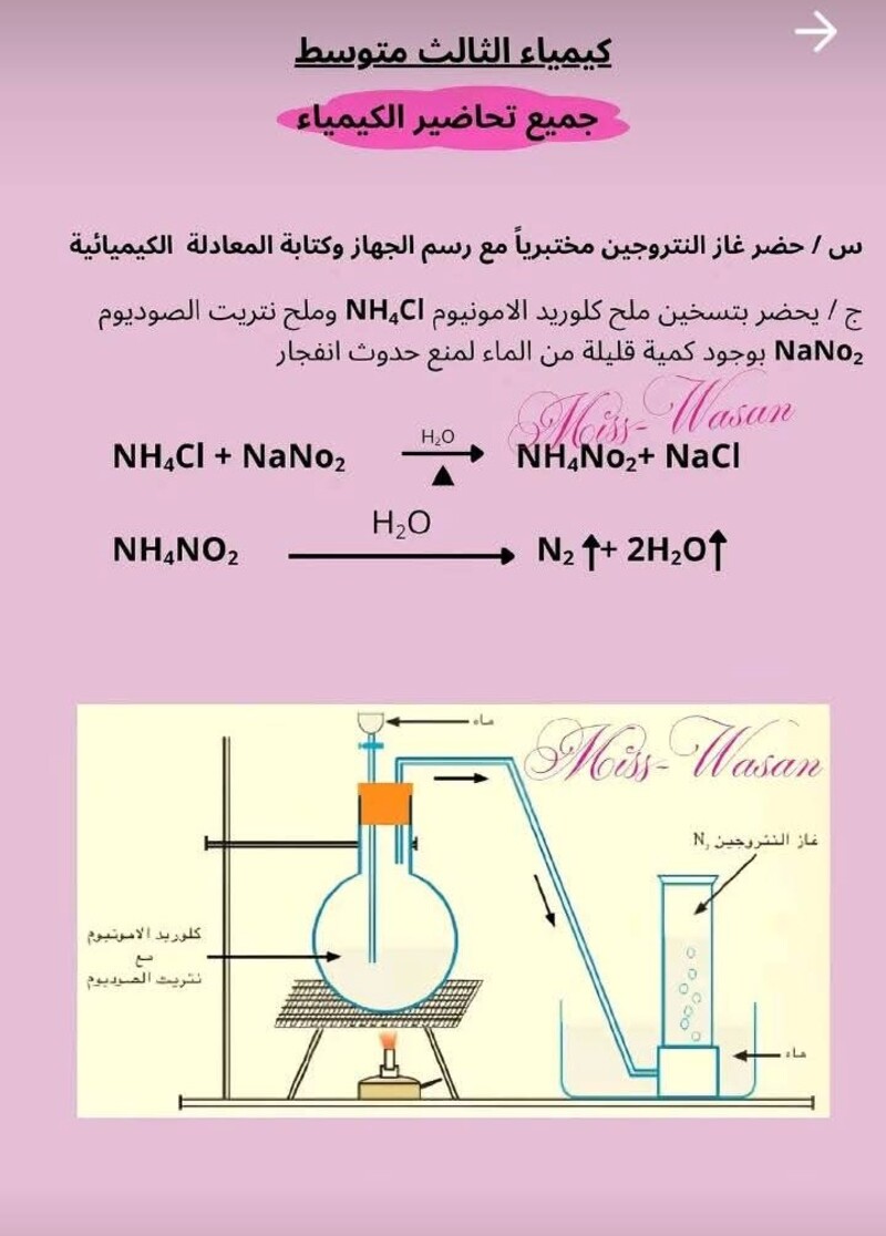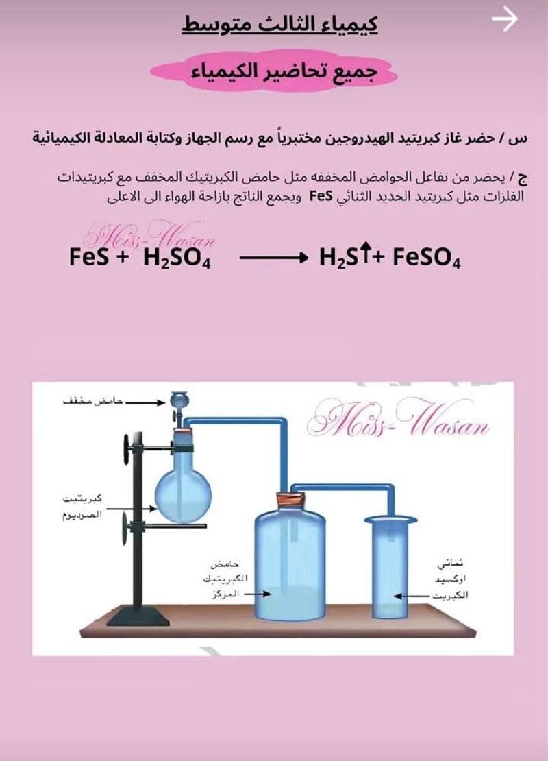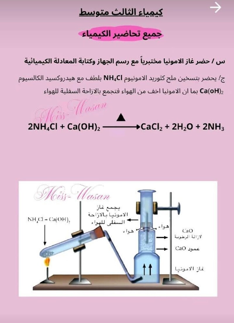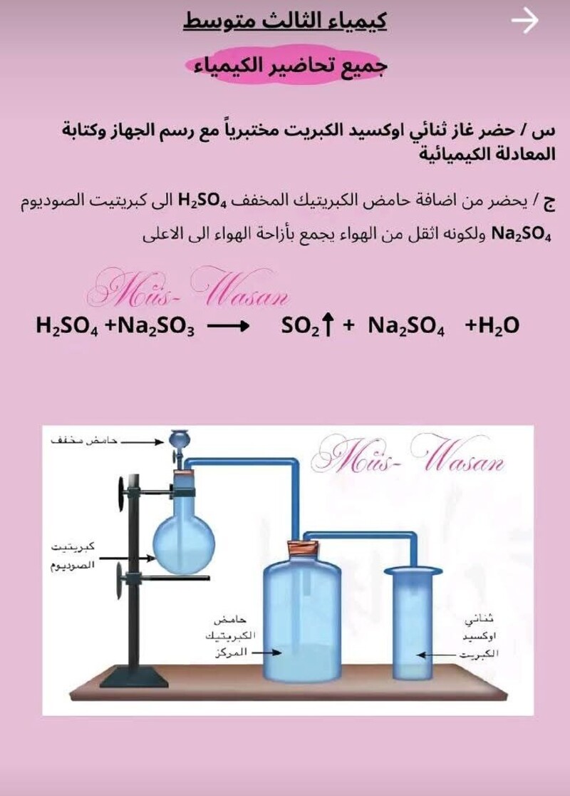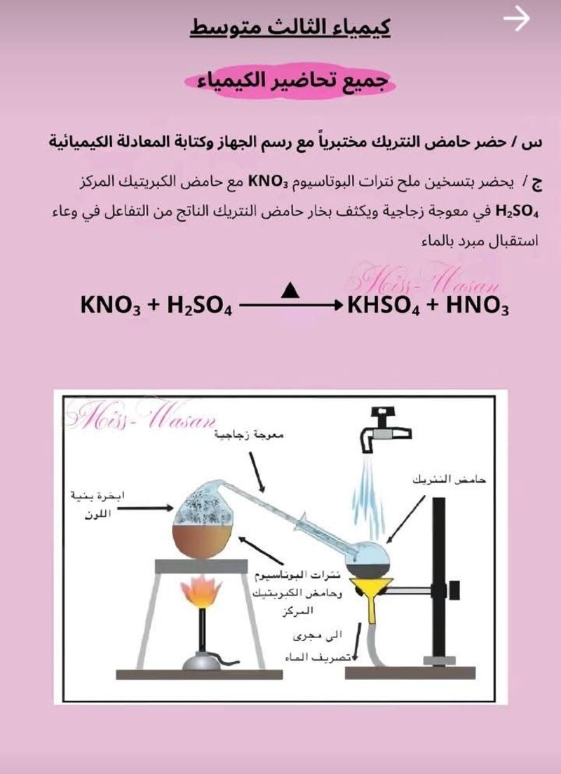 جميع التحضيرات التي تخص مادة الكيمياء الثالث متوسط