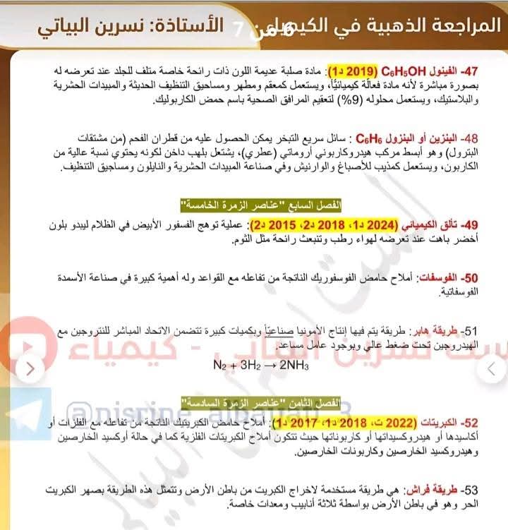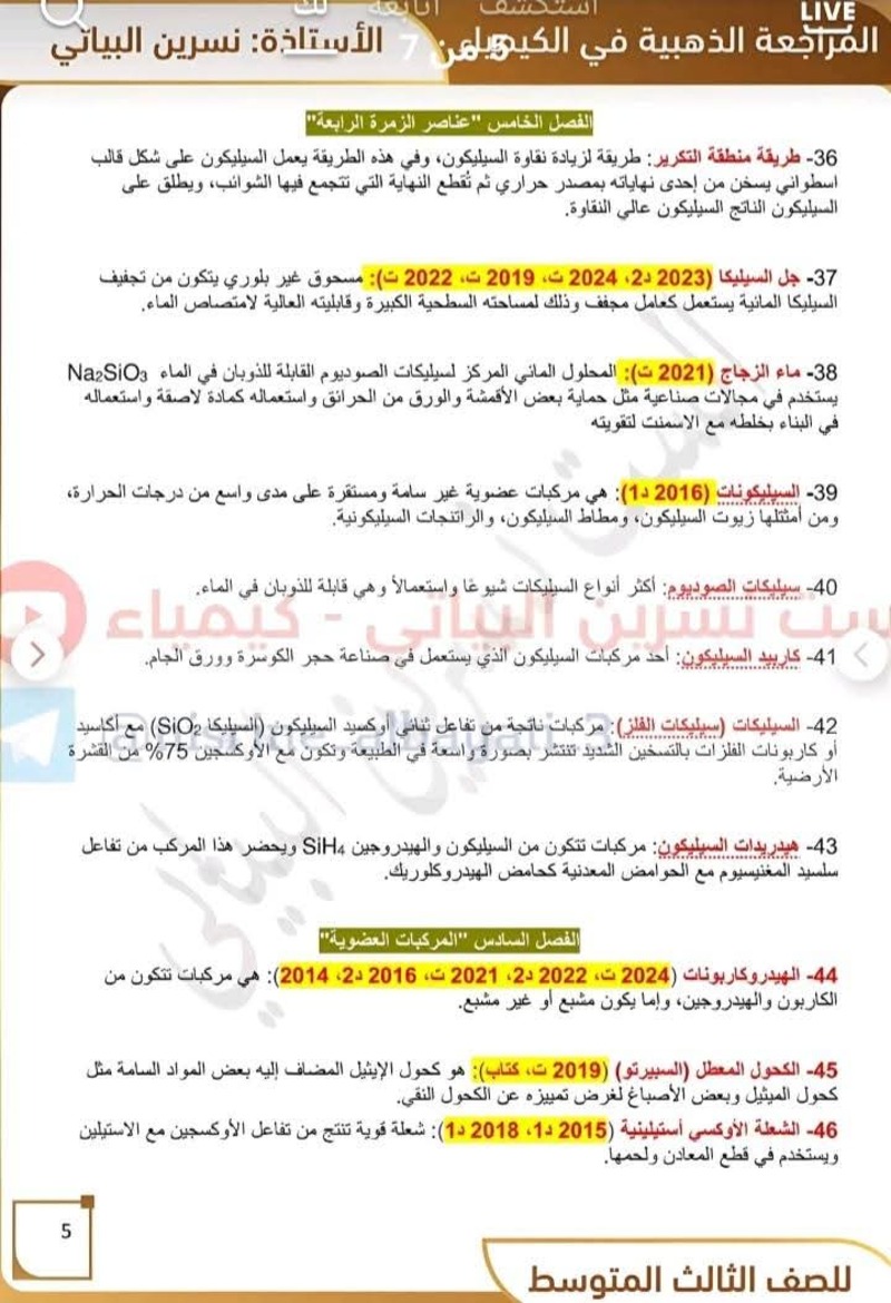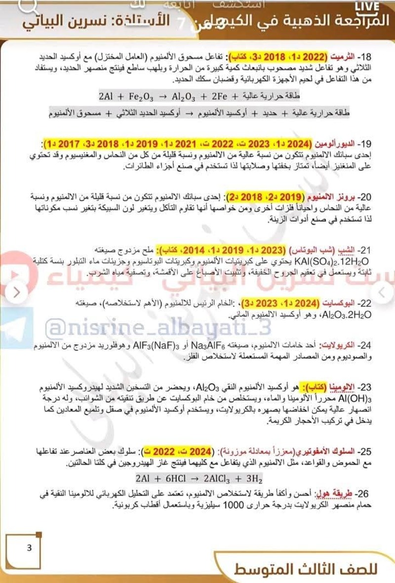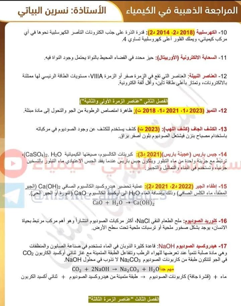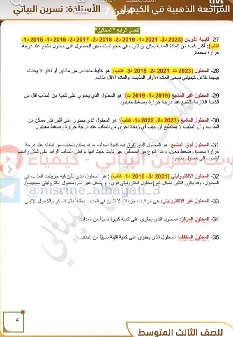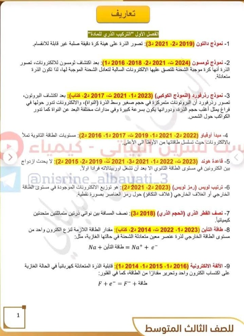 جميع تعاريف منهج مادة الكيمياء - للصف الثالث المتوسط 10 درجات مضمونة بالوزاري