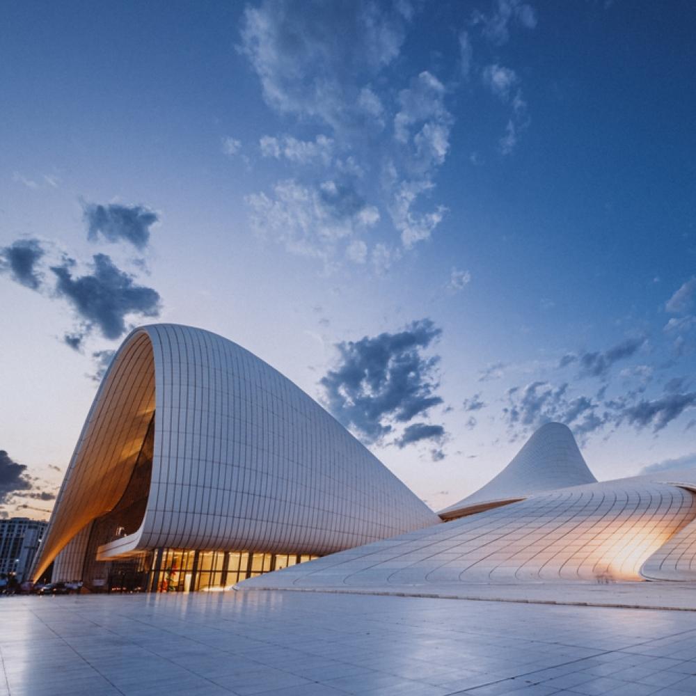 مركز حيدر علييف: تحفة معمارية من تصميم زها حديد، يضم معارض فنية ومتاحف تعكس الجانب الثقافي الحديث للدولة في أجواء راقية.