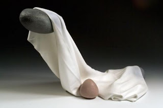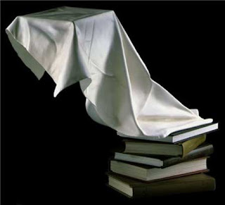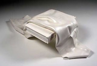 يستخدم القماش والكتب الحقيقية في أعماله، ولكن في الواقع، يقوم النحات المبدع