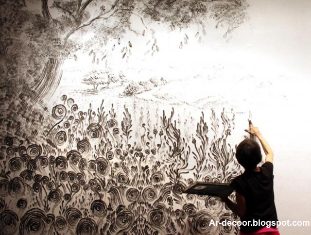 لوحات جدارية مرسومة بالإصبع من غبار الفحم تصميم جوديث براونشاهد اجمل اللوحات الرائعة المرسومة بالاصبع بعنوان ماس الغبار. رسمت على مدى عدة أيام في شهر فبراير أمام جمهور حي في متحف كرايسلر للفنون في نورفولك بولاية فيرجينيا باستخدام بصمات الأصابع التي تم إنشاؤها من مسحوق ناعم من الفحم .