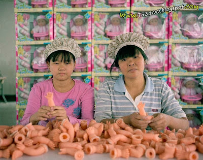 تعتبر الصين اكبر دولة مصدرة للالعاب فى العالم كله تقريبا 75 % من الالعاب فى العالم مصنوعة فى الصين وثمن اللعبة ذات الجودة العالية فى المحلات الامريكية تعادل مرتب 6 شهور من العامل فى احدى هذه المصانع وليتبين لنا الحجم الهائل لهذه الصناعة فى الصين قام احدى المصورين واسمه مايكل وولف بعمل مجموعة ضخمة جدا من الصور تبين الحجم الهائل لهذه الصناعة واسماه القصة الحقيقة للالعاب استخدم فيه اكثر من 20 الف لعبة بلاستيك وقام بهذا العمل الضخم بمساعدة 3 اشخاص لمدة 10 ساعات يوميا لمدة ثلاثة ايام وذهب الى امريكا ليرى حجم الالعاب الصينية فى امريكا وراى الالاف من الالعاب الصينية على مدار ثلاثين يوما فالصين من اكبر واشهر مصنعين الالعاب فى العالم كله