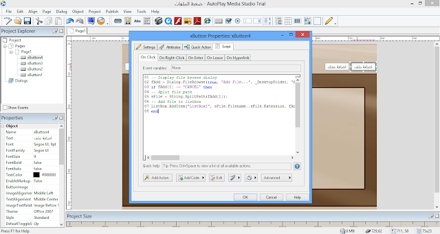 دبل كلك على زر اضافة ملف وندرج الكود التالي -- Display file browse dialog