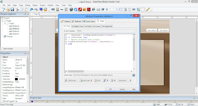دبل كلك على زر حذف وندرج الكود التالي :lSelected = ListBox.GetSelected("ListBox1");