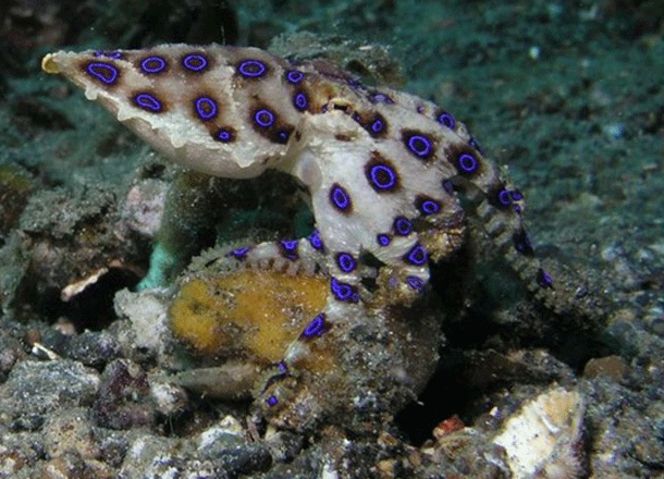 تعتبر واحدة من اكثر الفقاريات سمية في العالم ، والغريب انها تعتبر طعاما شهيا في اليابان ،تقوم ببخ السم وفي حالة حدوث ذلك سوف تسبب شللا في الحجاب الحاجز ومن ثم توقف التنفس .