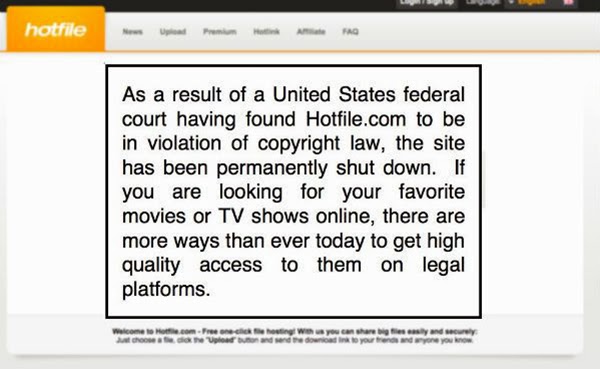 “As a result of a United States Federal Court having found Hotfile.com to be in violation of copyright law the site has been permanently shut down. If you are looking for your favorite movies or TV-shows online, there are more ways than ever today to get high quality access to them on legal platforms.”