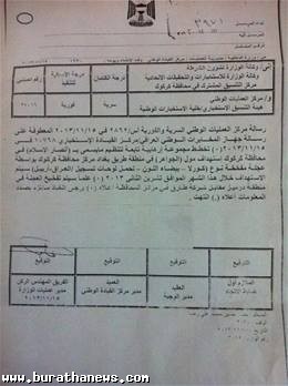 يشار الى أن الوثيقة صادرة عن مركز القيادة الوطني التابع لمديرية العمليات في وزارة الداخلية، وموجهة الى وكالة الوزارة لشؤون الشرطة، ووكالة الوزارة للاستخبارات والتحقيقات الاتحادية، ومركز التنسيق المشترك في محافظة كركوك، ومركز العمليات الوطني، وخلية الاستخبارات الوطنية في هيئة التنسيق الاستخباري.