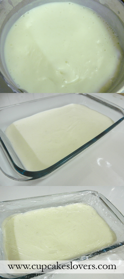 الطريقة:- في قدر صغير نضع الدقيق ثم نضيف الحليب بالتدريج مع الخفق حتى يذوب الدقيق، ثم نضعه على نار متوسطة ونحرك الحليب حتى يثقل، أو حتى تظهر بعض الفقاعات (تقريبا لمدة 10 دقائق)، نطفئ النار فورًا وننقله على صينية أو صحن ليبرد المزيج ويصبح بحرارة الغرفة، ونغطيه بورق نايلون ملاصق للخليط حتى لا يكون طبقة سميكة بسبب تعرضه للهواء.
