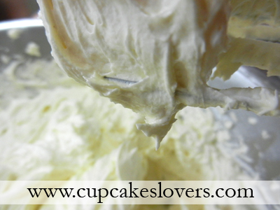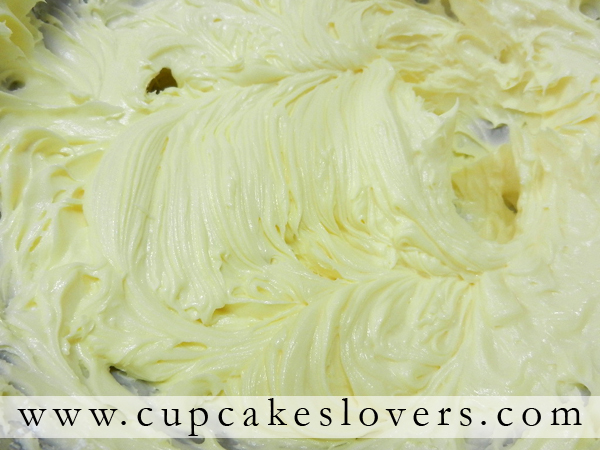 - في وعاء آخر، نخفق الزبدة حتى تنعم ثم نضيف السكر بالتدريج ونخفق ثم نضيف الفانيليا (وإذا أردنا إضافة أي نكهة أخرى يمكن إضافتها هنا، مثل قشر برتقال أو قشر ليمون وغيره).