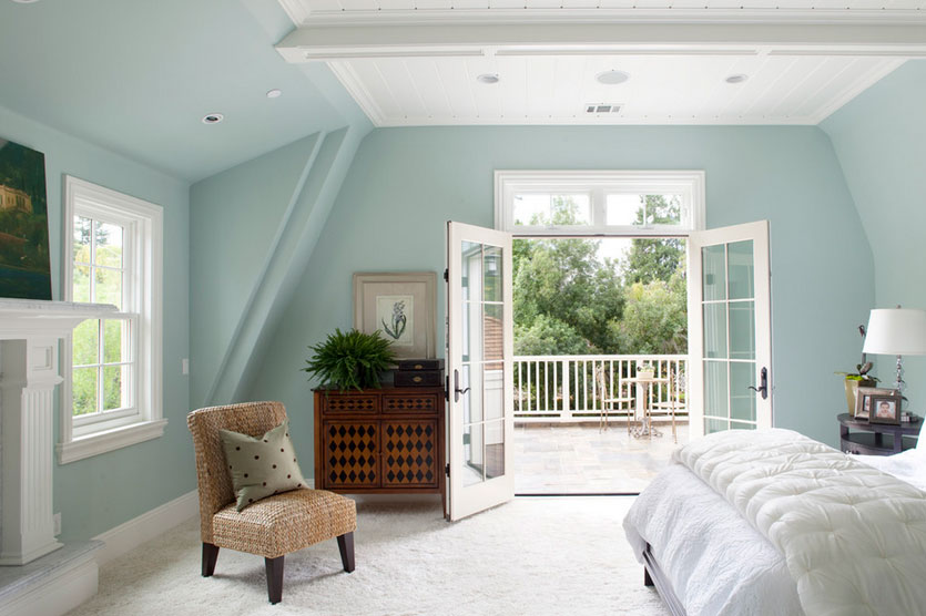 يعد اللون الأزرق الفاتح أحد الألوان الأكثر جمالاوأناقةً خاصة داخل غرف النوم وهو يتناسب مع اللون الأبيض. لذلك، يمكنك إختيار أحد الجدران وطلاؤه باللون الأزرق.
