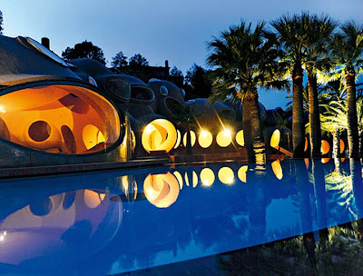 قصر بيـــــــــــار كــاردان قصر بلا زوايا أو حتى خطوط مستقيمة قصر بيار كاردن كأنه الفضاء على الأرض قصر لا يشبهه قصر آخر تماما كما كان يصمم أزياء مجموعاته بحيث لا تشبهه تصاميم إنه بيار كاردان المتميز دائما في عمله وعبقريته كما في قصره الذي يبدو للناظرله من أعلى كأنه محطة فضائية لكن على الأرض القصر يقع على هضبة خضراء في منطقة الكوت دازور جنوبي فرنسا مساحتها 8500 متر مربع ولها إطلالة بهية على بور لاغالير في مدينة تييول سورمير لقب بقصر الفقاعات (Palais Bulles) نسبة للأشكال الكروية التي تميز مختلف أجزائه من الخارج و الداخل وتتخلل هذه السطوح الكروية فتحات زجاجية مستديرة أيضا أشبه بتلك التي نراها في المركبات الفضائية إنه أشبه بحلم لكنه حلم يحتاج إلى مايشبه المعجزة لتجسيده على أرض الواقع فهو يتطلب مهندسا بارعا بل عبقريا مثل المهندس الروماني الجنسية انتي لوفاغ ليتولى تصميمه وتنفيذه ولآلاف الأطنان من التراب ومواد البناء الأخرى إضافة إلى الكثير الكثير من الصبر وليس مستغربا أن يستغرق تنفيذه 14 عاما و النتيجة تبرز الجهد والتعب فهذا القصر بدعة معمارية رائعة وبيت بلا زوايا أو خطوط مستقيمة كما باقي البيوت والقصور ومساحة القصر المبنية نحو 1200متر مربع تتضمن صالونين ثماني غرف نوم ومكتبة وقاعة محاضرات وصالة سينما وأخرى للألعاب إضافة إلى ممرات تربط بين مختلف جزر القصر التي قد يضيع المرء فيها بسبب تشابهها وتقارب أشكالها كما يحيط بالقصر 3 مسابح وحدائق الزهور وأشجار النخيل داخل القصر لا يقل إبتكارا و تميزا عن خارجه وقد إستعان بيار كاردان بفنانين كبار في مجال الهندسة والديكور لتنفيذ التجهيزات الداخلية، الزجاج و الشبابيك الدائرية نفذها فنانو مورانو وتولى كلود بريفو تصميم الأثاث بالتنسيق مع كاردان الذي تولى رسم بعضها بنفسه المفارقة اللطيفة في الموضوع أن كاردان وجد صعوبة في تعليق اللوحات الفنية على الجدران المائلة والبيضاوية مما دعاة إلى طلب 6 من أصدقائه الرسامين الحضور و رسم اللوحات الفنية مباشرة على الجدران يعتبر قصر الفقاعات المكان الأفضل للإقامة بالنسبة لمصصم الأزياء العالمي بيار كاردان فابن البندقية الذي بنى إمبراطورية تساوي ثمانية مليارات دولار و صاحب العديد من القصور والمنازل في نيويورك وبرشلونة وباريس وغيرها يبدو أنه قرر بعد بلوغه سن الثمانينات من العمر الهرب من مشاكل الأرض إلى الفضاء الذي بناه لنفسه على شاطىء مدينة الكوت دازور .