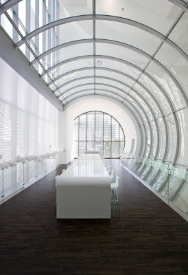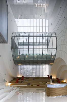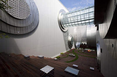 مجمع ثقافي بتصميم مبهر ومدهش ولقد ابتكرت شركة Unsangdong الكورية للعمارة مشروعاً رائعاً يمتد على مساحة تبلغ 4,110,9 متر مربع ومساحة بناء قدرها 3,153,58 متر مربع ومساحة أرضية إجمالية قدرها 7,144,53 متر مربع في مدينة سيول الكورية حيث تقترح شركة Unsangdong طريقةً غير مألوفة نوعاً ما في تصميمها المعماري لمشروع مجمع Kring Kumho الثقافي فقامت الشركة المصممة بتطوير استخدام فكره الايقونه التي لطالما استخدمتها سابقاً الشركات التجاريه كوسيلةٍ لخلق أرباحٍ وهاهي تعود الفكره للحياة مره اخري لتُخلق من جديد مفهوماً فراغياً التركيز على أساليب جديدة في ترك أثرٍ في المساحات والفراغات وذلك من خلال تقديم مساحةٍ تكون بمثابة وسيلة مباشرة قادرة على تلبية حاجات المثقفين ورغباتهم وتقديم تجربة فراغية جديده وبالتالي نجد أن تصميم المساحة بهوية جديدةٍ أو التصميم الذي يرمز لهويةٍ جديدةٍ يمكن له أن يؤثر إيجاباً على المثقفين من خلال جعلهم يطورون ويعيدون التفكير بالصورة الجديدة ولا يتوقف معنى مساحةٍ جديدةٍ ما عند تقديم صور جديدةٍ بواسطة المساحة أو الموقع وإنما تعدى ذلك لتصل لمرحلة تعزيز وإعادة إنتاج التأثير الثقافي والسلوك الاجتماعي العام وتمثل الهدف الكبير للشركة المصممة في إنشاء مبنىً معماري لخلق أنظمة لتسهيل التواصل ومن ثم أصبح تطبيق هويةٍ معينةٍ في تلك العمارة الفكرة أو الأيقونه التي على المصممين تطبيقها لدى تصميم مشروع Kring لتحقيق هوية جديدة من أجل المجتمع فجاءت الطريقة التي تم بها ابتكار هذا المبنى مختلفةً عن الطريقة التقليدية فقد كانوا على وشك ابتكار منحوتة عمرانية ومن ثم إنشاء مساحة مركبة من مباني ومنشآت في حين ساهمت المطالب الإبداعية التي تم تقديمها من قبل شركة Kumho E&C وتعديل فكرة عمل التصميم المعماري الذي اقترحته الشركة المصممة في إتاحة إمكانية التعامل مع المشروع بطريقة مختلفة لخلق ايقونه معماريه غير تقليديه وبناءً عليه تم تغيير الصورة الجديدة الخاصة بشركة Kumho E&C كهوية جديدة من خلال عملية التشكيل المعماري وهكذا كانت نقطة بداية سبغ المكان بطابع شركة Kumho بوضع التركيز على التناغم ومن خلال عملية التفسير المعماري تم ربط ظاهرة الانسجام والتشديد عليها في المدينة والمجتمع من خلال التماوج ومن ثم تم تعميق فكرة التماوج فقد أراد المصممون أن يجمعوا بين عناصر الطبيعة المتنوعة والحياة والمدينة بطريقة متناغمة مع جوهر الانسجام للاندفاع إلى المدينة وخلق الصدى والتموجات وهذا ما أصبح مخطط المشروع الجديد هكذا تم خلق الصور البارزة للمدينة وامتصاص طاقتها في نفس الوقت بتلك الطريقة مما يقود إلى فكرة الحلم أيضاً كما أراد المصممون أن يجعلوا من هذا المبنى صرحاً معمارياً متميزاً في المدينة ليلاً نهاراً وخصوصاً أن يكون منحوتة منيرة في الظلام وعلاوةً على هذا أصبح المشروع عبارةً عن مساحةٍ بيضاءٍ نقية لدى الدخول إليه لاحتوائه على جميع أنواع البرامج الثقافية فتعمل المساحة البيضاء النقية التي تحقق سرياليةً فراغيةً كمسرحٍ لأداء العروض وتماماً كما تغير خشبة المسرح نفسها لتتكيف مع أنواع قصة المسرحية يصبح هذا المكان مساحة مركبة ليعدل نفسه وفقاً للحاجات المتنوعة أما برنامج إدارة الفن الثقافي فقد تم تخيله بحيث يمكن استخدام هذا المكان من قبل المتعهدين المحترفين لتقديم شيء أكثر أهمية من مجرد الأحداث المؤقتة العادية فالمكان المركب يمكن أن يكون ممراً للتواصل يتم اقتراحه عبر ابتكار برنامج داخلي يتضمن إمكانيات متنوعة هذا ومن المطلوب أيضاً توفير فهم أساسي لطرائق وكيفية خلق ماركة وعملية بيع ناجحة لأن بيع تصميمٍ ما لا يتوقف عند الاستجابة لحاجات لمستهلك وإنما يثير عواطفه ليخلق من بعدها حاجةً جديدة للإنتاج وقد تم نقل أسس المجتمعات من إنتاج المنتج إلى عالم المعلومات كما سبق وتم تحويل المجتمع القائم على الكيمياء إلى مجتمع قائم على حق الاختيار والصورة وربما بات من المهم بالنسبة إلى المعماري أكثر من قبل أن يقوم بخلق ماركته ال