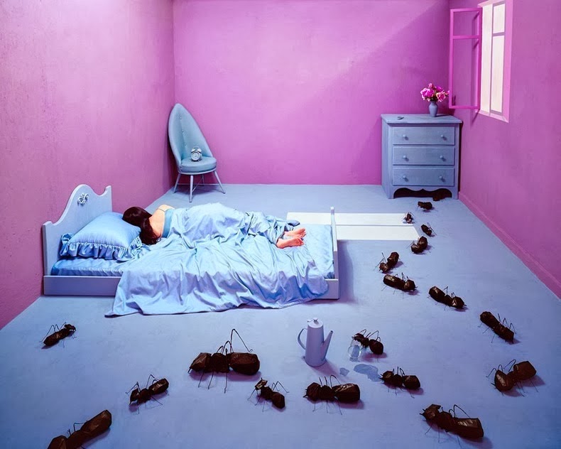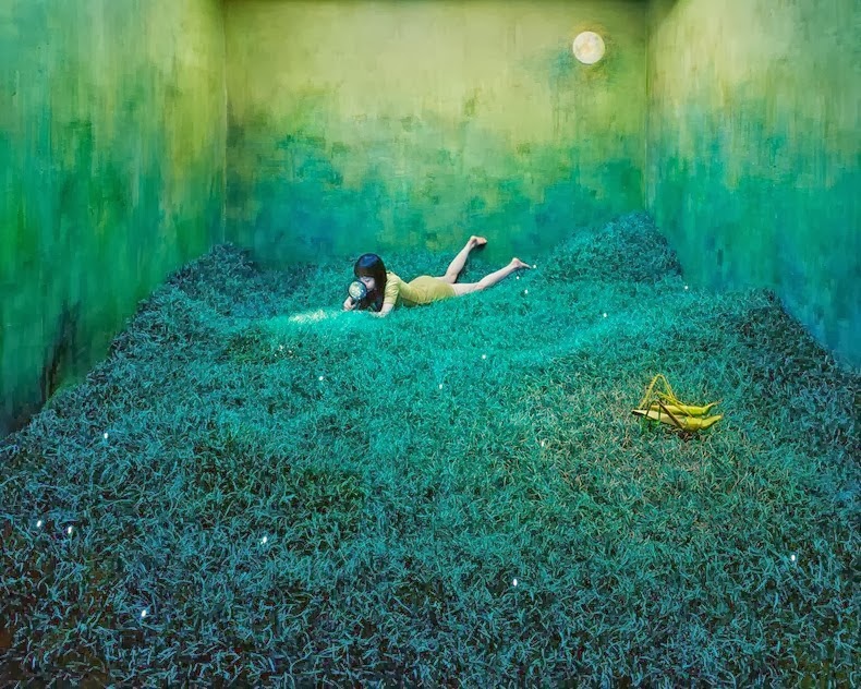 الفنانة الكورية جي يونغ لي تقوم بإنشاء مشاهد متقنة تشبه عوالم سريالية داخل ستوديو صغير في سيول, قياسه 11.8 قدم بنسبة 13.5 قدم إلى 7.8 قدم, باستخدام مواد رخيصة مثل الستايروفوم والورق المقوى والطلاء، حيث تقوم بتحويل هذا الاستديو الصغير إلى مايشبه أراضي الأحلام رائعة, والمشاهد مستوحاة من قبل حياتها الشخصية أو الخرافات الكورية القديمة حيث تمتلك كل الخلفية الدرامية الخاصة بهم, وكل عمل منهم قد يأخذ أسابيع، وأحيانا أشهر للإنتهاء منه. جي يونغ هي فنانة واعدة في الساحة الفنية الكورية وحاصلة على العديد من الجوائز بما في ذلك جائزة الفن عام 2012، وسوف تفتتح معرضها الخاص في اوبيو، فرنسا من 14 فبراير إلى 15 مارس 2014, وسيكون هذا أول معرض لها في بلاد أوروبية.