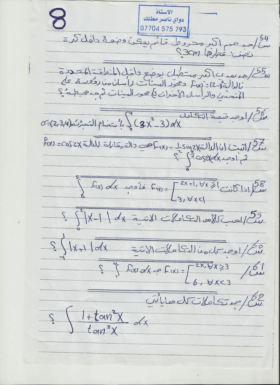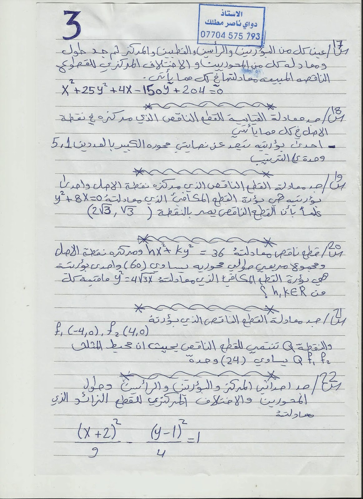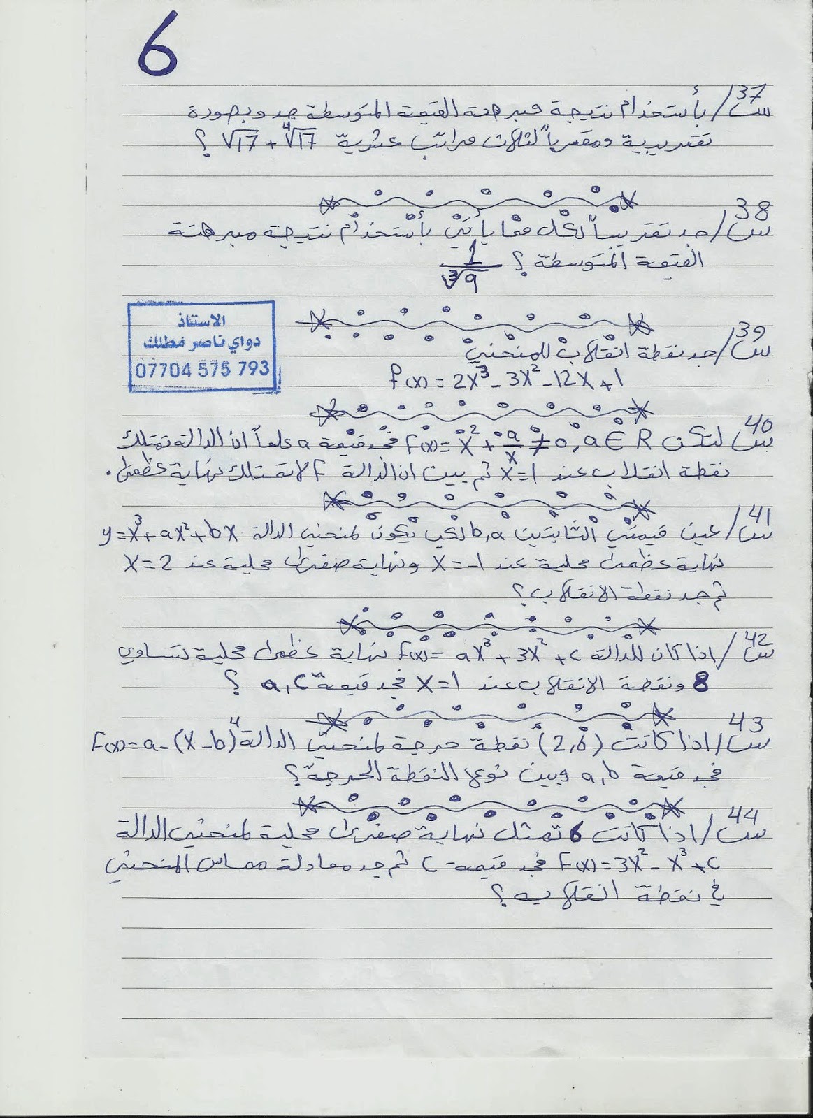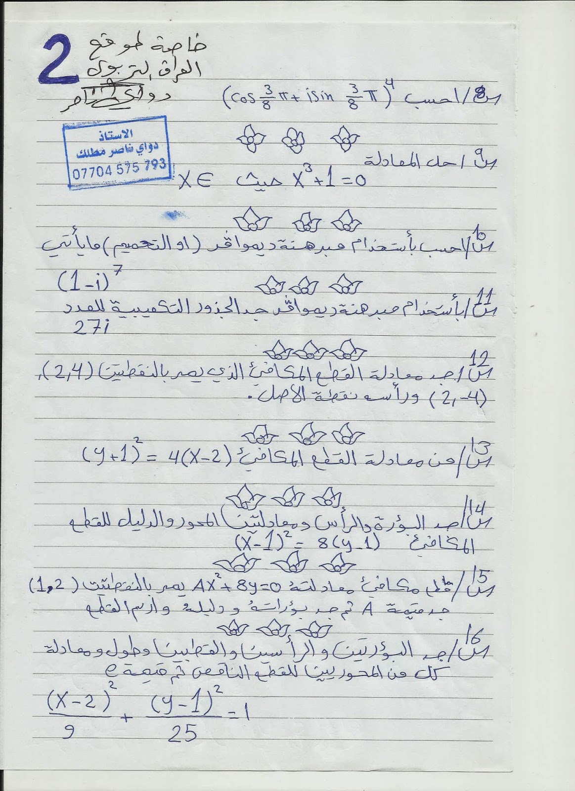 بخصوص المبرهنات السادس العلمي ركز على اللمبرهنة السابعة والتاسعة