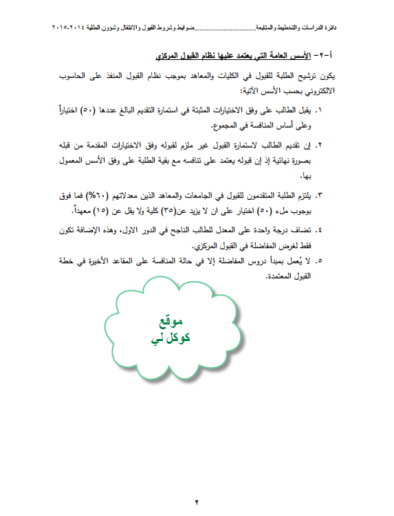 شروط وضوابط القبول المركزي في الجامعات والمعاهد العراقية للعام الدراسي 2014-2015