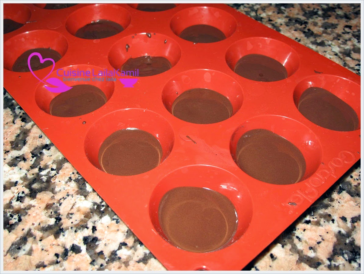 نذيب الشوكولا ونضعه في قعر مول السيليكون كما نرغب